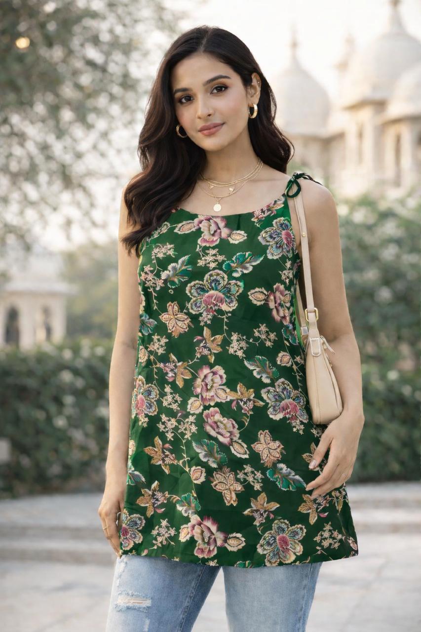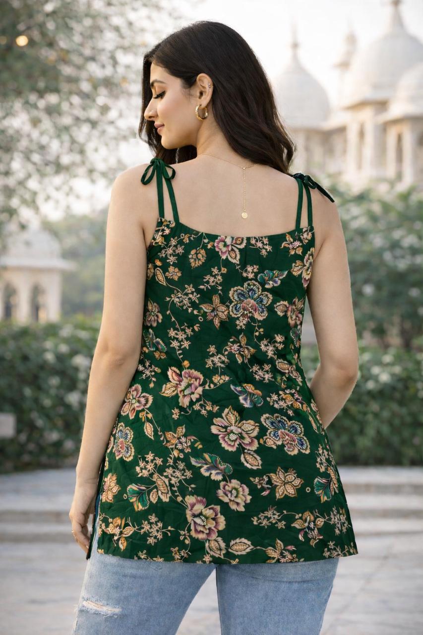 Add a touch of effortless elegance to your everyday style with this beautifully crafted Bottle Green Floral Short Kurti from Rosera. Designed for comfort and charm, this kurti features a delicate floral print with stylish tie-up shoulder straps, making it perfect for casual outings, brunch dates, or festive get-togethers.